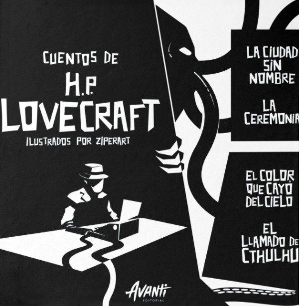 Edición de los primeros cuatro cuentos de H. P. Lovecraft trabajado en detalle con traducciones propias e ilustrado en lino grabado por el artista Ziperart.
