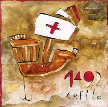 ¿Descubrimiento? ¿Encuentros de culturas? ¿Despojo? Jorge Cuello narra con magistral pincel y aguda pluma su ácida visión de los hechos.